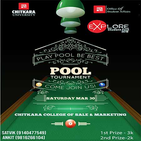 The race to get the black ball has begun! We are talking about the 16 balls game! Yess you guessed it right..Its a POOL game where one creates his own opportunities, where one can't limit his challenges but challenges his limits. A game all about angles and setting the target right . So pick up your cue and practice relentlessly as you can't get back from hitting the perfect stroke in EXPLORE'19.