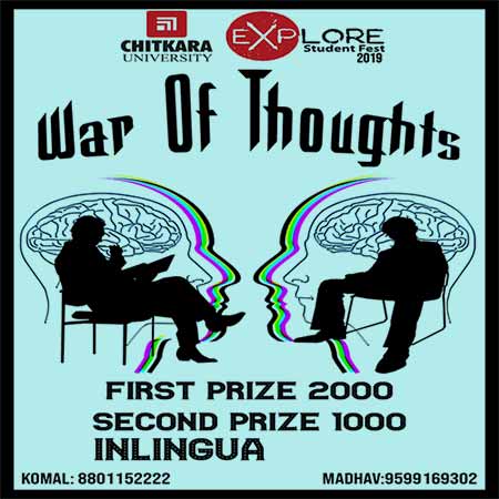 "Words can inspire. And words can destroy. Choose yours well." If you think you have extraordinary public speaking skills and you can sway the crowd with your arguments then this is the event for you. Explore'19 is set with 'War of Thoughts' in which you will be using the power of your words to make sure you beat your opponent in any way possible.