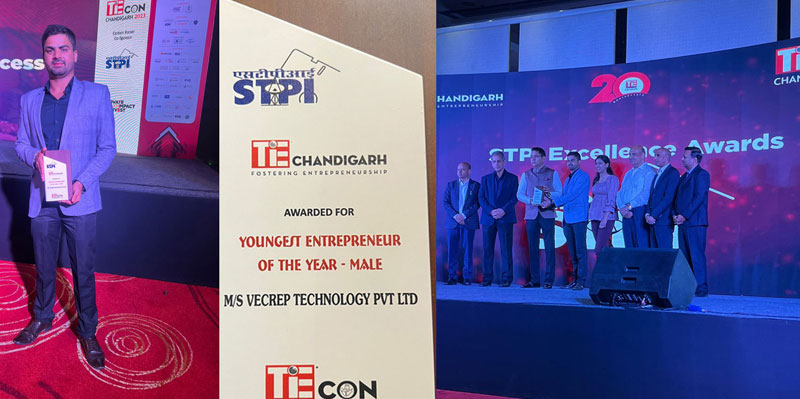 Rajat Soni, founder of VecRep Technologies Pvt. Ltd., a startup mentored and incubated by Chitkara Innovation Incubator Foundation (CIIF), has been named the “Youngest Entrepreneur of the Year” by Software Technology Parks of India (STPI) at the Annual IT Event – TiECON 2023.