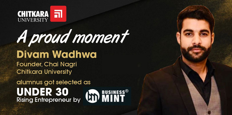 Chitkara University’s distinguished alumnus, Divam Wadhwa, Founder of Chai Nagri – a startup incubated at Chitkara Innovation Incubator Foundation – has been selected as an “Under 30” Rising Entrepreneur by Business Mint.