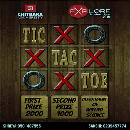 Life itself is a game of tic-tac-toe. Its always better when you are surrounded with X's and O's. To rejuvenate your childhood in Explore'19 we have tic-tac-toe for all of you. To play with the minds and to outwit the rival in this challenge! Buckle up yourselves as it is too much fun
