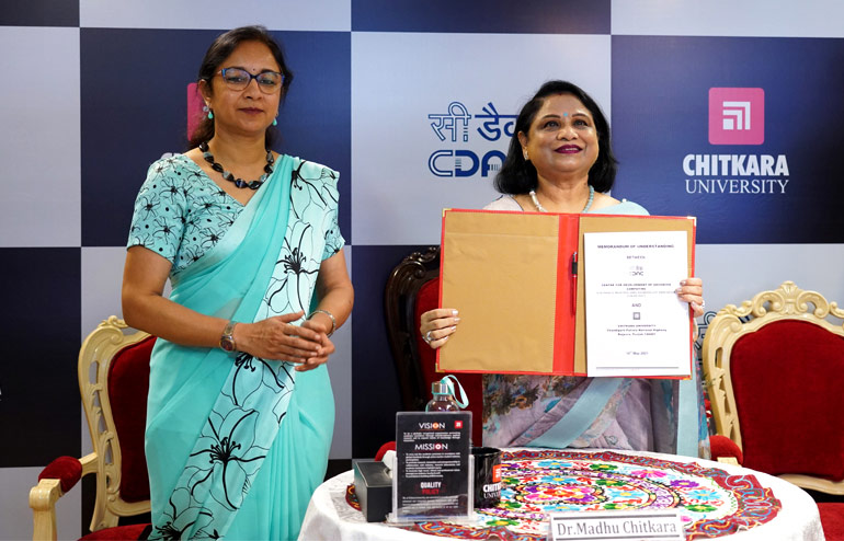 Chitkara University, Punjab, and Center for Development of Advanced Computing (C-DAC), Mohali signed an MoU to provide a fillip to research and innovation here today. The MoU was signed during the Virtual Commemoration of 33rd Foundation Day of CDAC. Dr VK Saraswat, Member, Niti Aayog presided over the function.