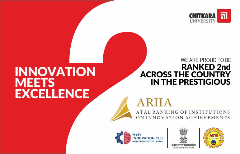 Chitkara University, Punjab, has secured the 2nd rank in the prestigious Atal Ranking of Institutions on Innovation Achievements 2021 (ARIIA 2021) released by the Ministry of Education, Government of India in the University & Deemed University (Self Finance / Private) category across India.