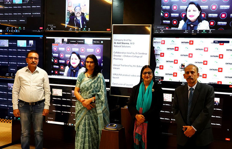 Dr. Anil Sharma (MD, Natural Solutions), while introducing the product shared, “VIRULINA is a polyherbal combination. A powerful immune stimulant which is clinically tested. As per the studies conducted, it has been clinically proven that it helps in the prevention of life-threatening symptoms such as Acute Respiratory Distress Syndrome (ARDS) caused due to COVID-19 infection. ARDS is one of the major causes of death in COVID-19 patients. We are very thankful to the Chitkara College of Pharmacy for the support they have extended to us in this partnership. Our collaboration with Chitkara University has helped us leverage the extensively established preclinical, clinical safety & efficacy, and quality credentials for the drug development of herbal and advanced Phytopharmaceutical products.”