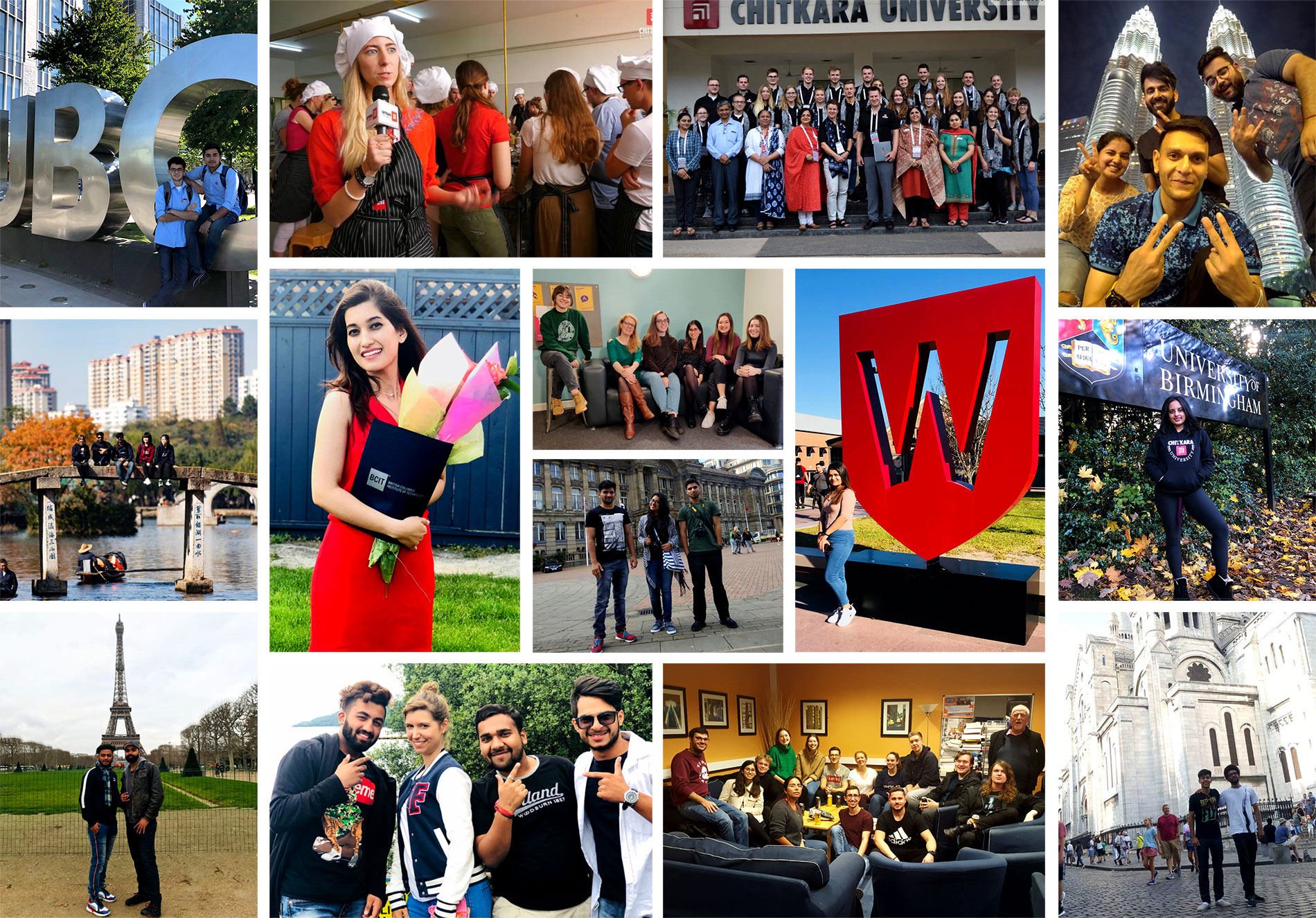 Chitkara University students experiencing global exposure at international universities and iconic landmarks.