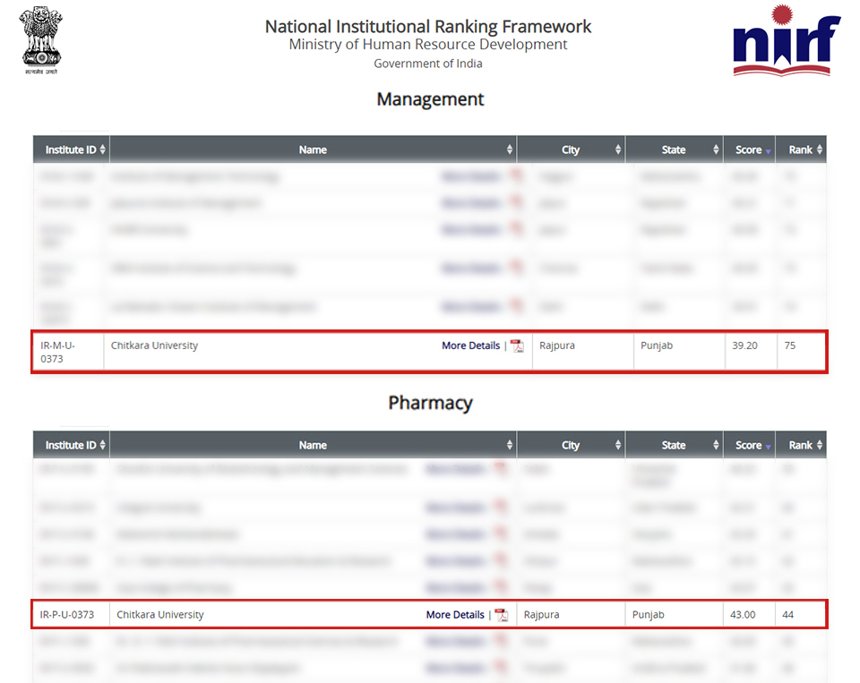 We are delighted to share the news that Chitkara University programs have once again been ranked among the Nation’s Best in the 2019 NIRF India Ranking.