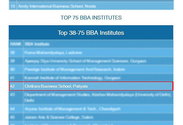 Chitkara Business School has been placed 43rd among ‘Top B-schools – Private’; and 63rd among ‘Top B-schools...