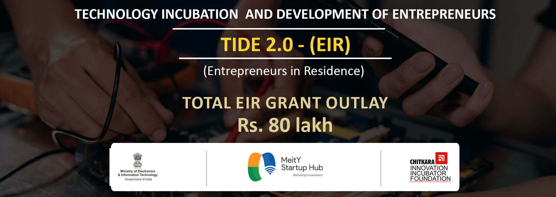 Chitkara Innovation Incubator Foundation, Chitkara University, Punjab is calling applications for EiR Grant of upto INR 4 lakh under TIDE 2.0, MEITY for validation & development of startup idea.