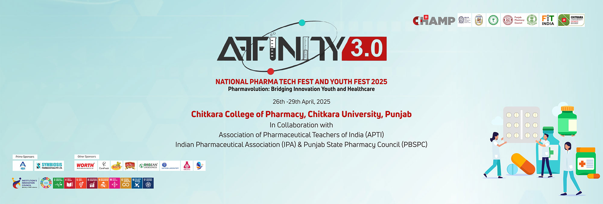 Chitkara University, Punjab, is proud to announce Affinity 3.0, the third edition of its National Pharma Tech Fest and Youth Fest 2025, scheduled to take place from 26th to 29th April 2025. Organised by the Chitkara College of Pharmacy, the event aims to celebrate innovation, youth engagement, and advancements in healthcare under the central theme: “Pharmavolution: Bridging Innovation, Youth and Healthcare.”