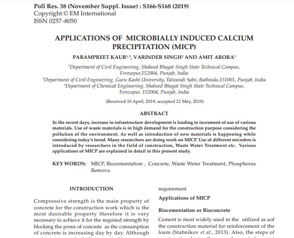 | Title of the Research Paper : Applications of microbially induced calcium precipitation (MICP) |