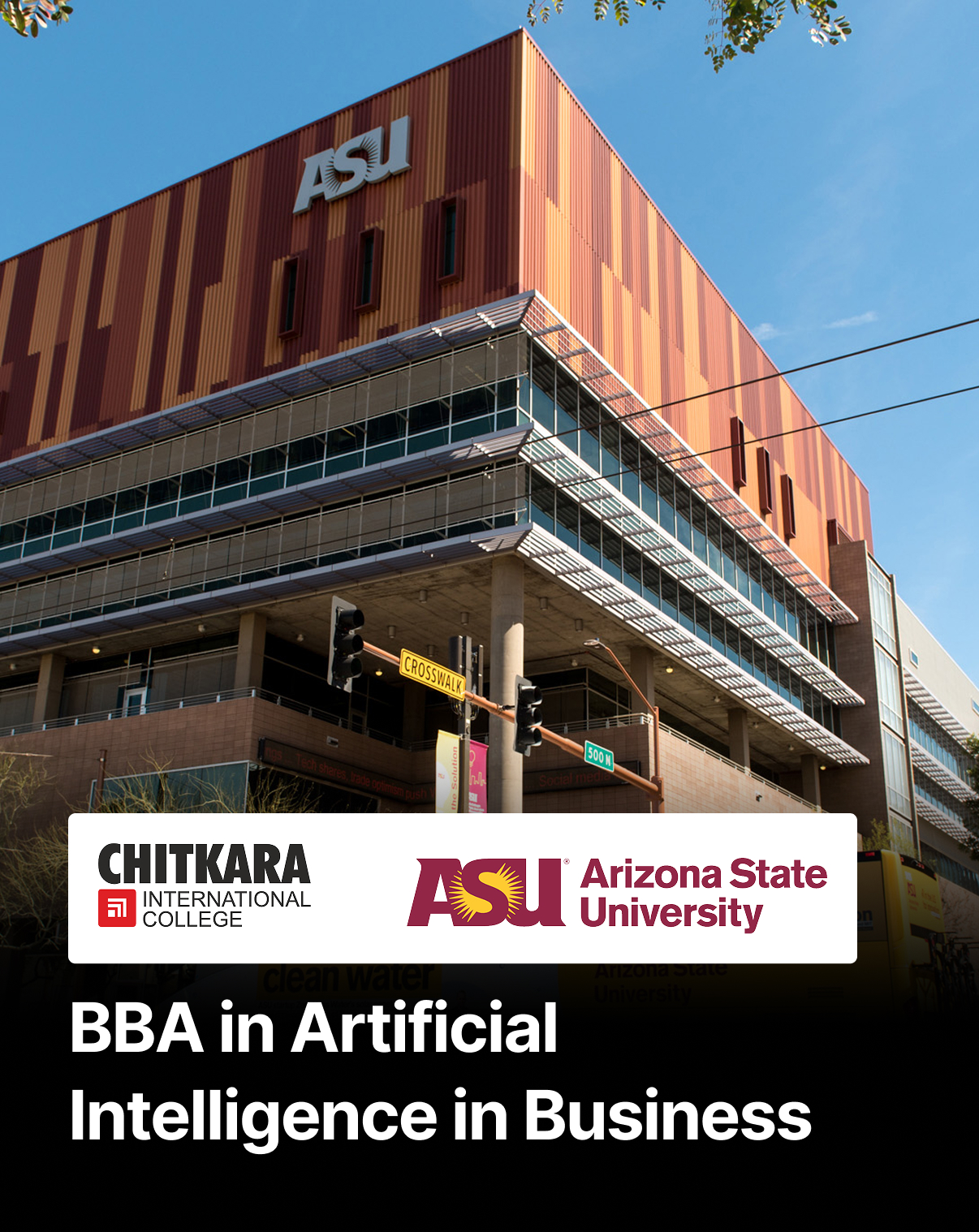 Unlike traditional business programs, ASU’s BBA in Artificial Intelligence in Business blends core management principles with cutting-edge AI, machine learning, and data analytics. Delivered jointly by Chitkara University and Arizona State University, this program allows Indian students to master tech-driven business strategies through a globally aligned curriculum.