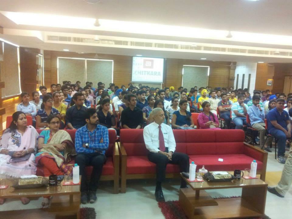 Dr Sandhir Sharma, Dean, Chitkara Business School, addressed the students in which he told them the various practical and theoretical exposures the students will witness and what is expected out of them here at Chitkara as students. The students were also given an overview of International assignments and collaborations of the University.