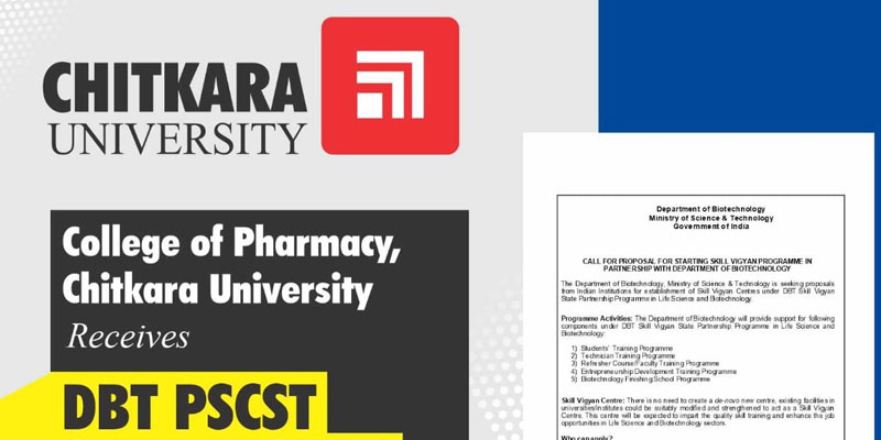 Chitkara College of Pharmacy bestowed with the DBT PSCST Skill Vigyan Center Award