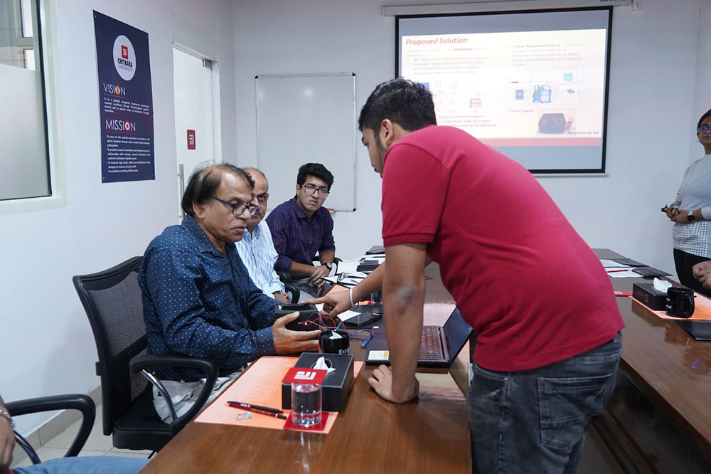 Thanks are due to our jury for evaluating these projects and giving their expert comments and feedback to the applicants. Based on the recommendation of the jury, the results will be announced shortly. The jury comprised of Mr. Harpreet Singh (CEO, Eon Infotech Limited), Mr. Parveen Khosla (MD, Vaani Precision Industries), Prof. (Dr.) P.K. Khosla (PVC, Research, CURIN) and Prof. (Dr.) Vijay Kumar Jadon (Dean, Applied Engineering, Chitkara University, Punjab).