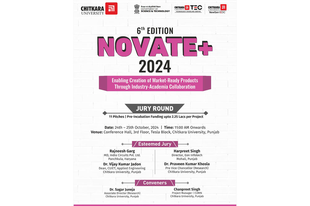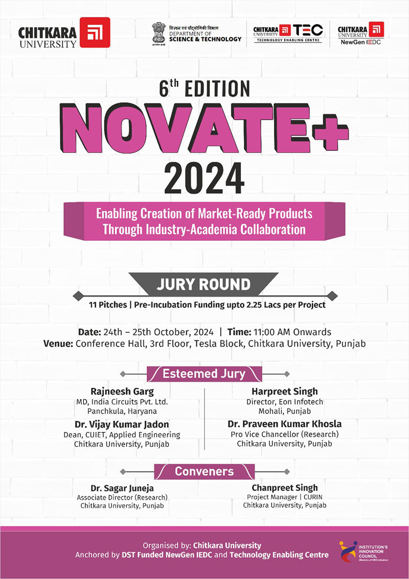 NOVATE+ 2024 has been organized by Chitkara University and Anchored by DST funded NewGen IEDC and Technology Enabling Centre at Chitkara University.