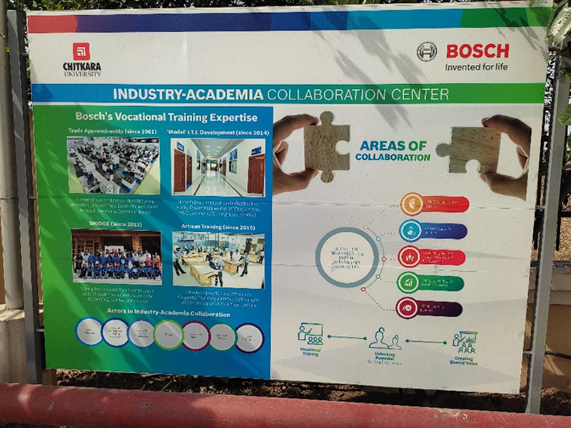 We have GoI sponsored Technology Enabling Centre at the university, where our prime objective is to develop an ecosystem in which universities' research/technologies can be used by the MSMEs in addressing various challenges. Bosch has MSMEs Capacity Building as one of their verticals under their industry-academia collaboration program. This common link enabled Bosch and Chitkara University to join hands for the setting up of Industry-Academia Collaboration Centre at the university.