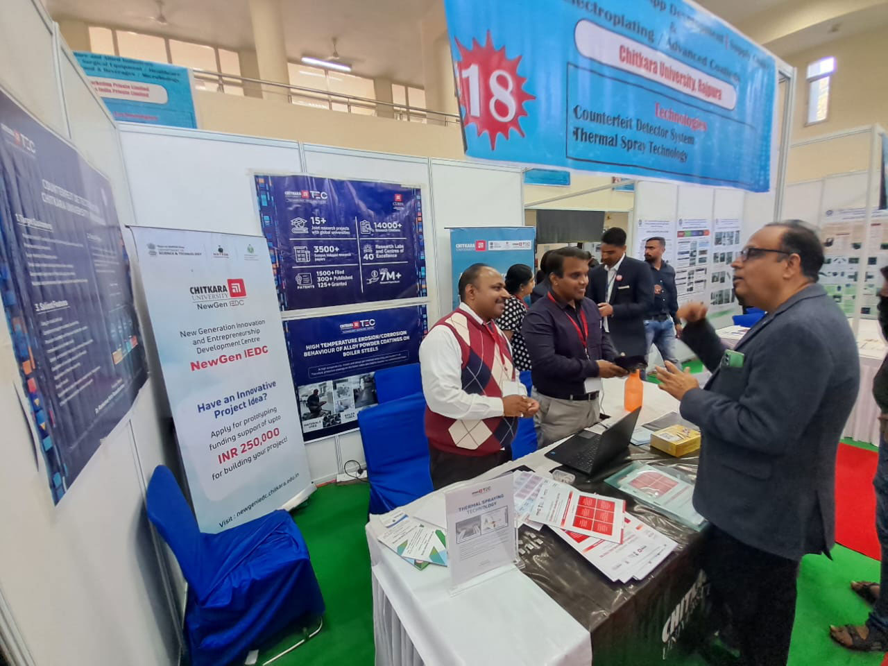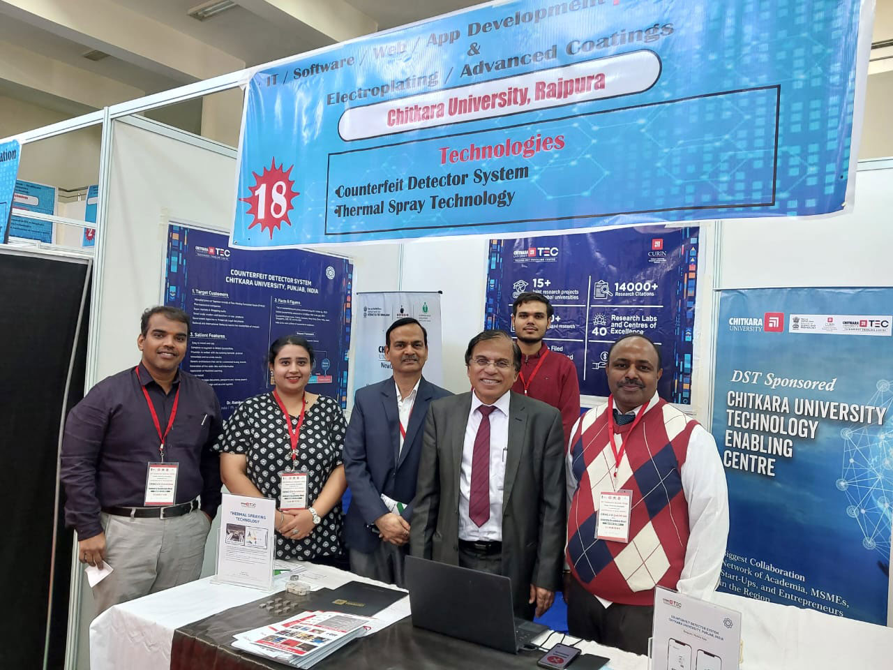 A team from CURIN participated in the CRIKC-CII Exhibition cum Industry Academia Meet held at Panjab University, Chandigarh, Punjab on November 12 and demonstrated two innovative and technology-enhanced projects titled a) Thermal Spray Technology and b) Counterfeit Detector. More than 100 academic institutions and industries participated in this event. The faculty members from CURIN who participated were Dr. P. K. Khosla (Pro-VC), Dr. Anoop Kumar Singh (Professor), Dr. Rakesh Goyal (Associate Professor), Dr. K. R. Ramkumar (Associate Professor), and Dr. Amanpreet Kaur (Assistant Professor).