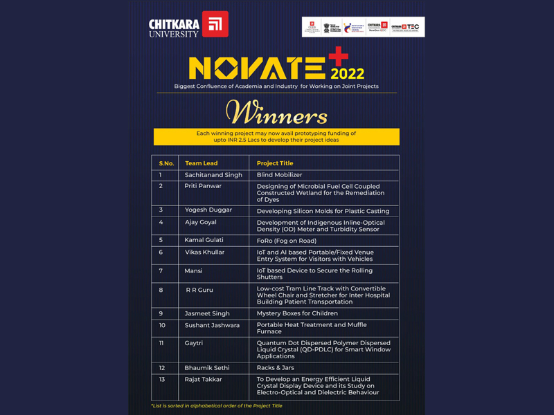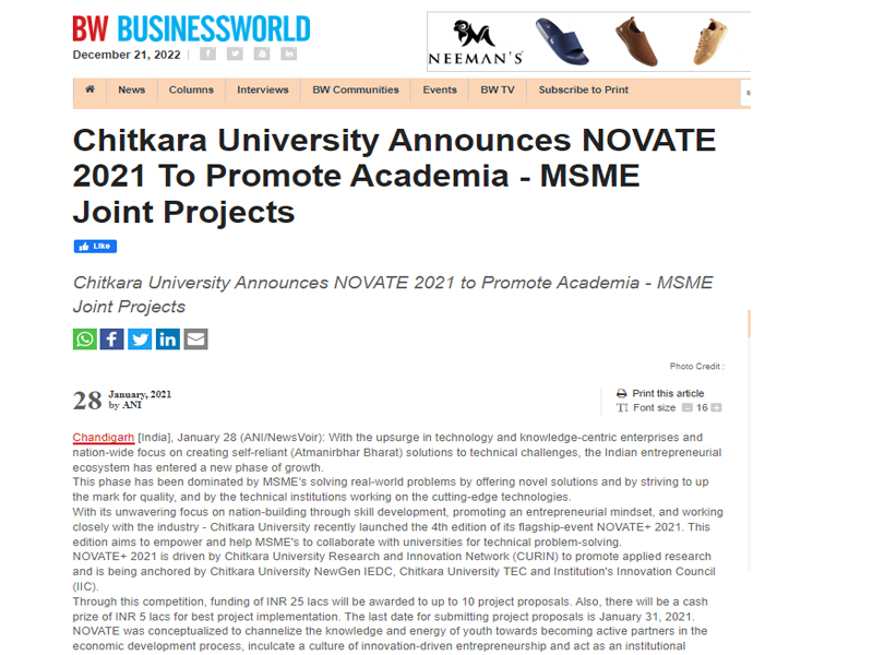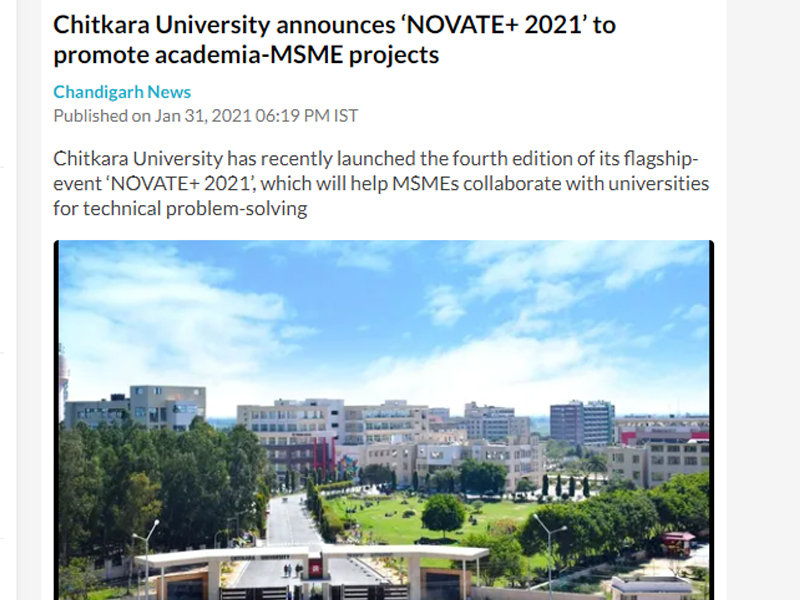 - Chitkara University Announces NOVATE+ 2021 Media Coverage