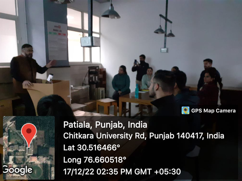 On December 17, 2022, Mr. Sagar Juneja - Assistant Dean, CURIN and Coordinator - NewGen IEDC and TEC (DST funded centers) did an interactive session with the faculty members of Applied Sciences Department of Chitkara University, in which he discussed about the support available at Chitkara University for working on innovative projects. He discussed the possibilities of working on industry-academia joint projects under the Technology Enabling Centre (TEC) and the enabling ecosystem that TEC has created at Chitkara University. Additionally, he discussed about NewGen IEDC and requested the faculty members to encourage students to apply prototyping funding from NewGen IEDC and work on innovative projects. The session was attended by over 15 faculty members and 5 students.