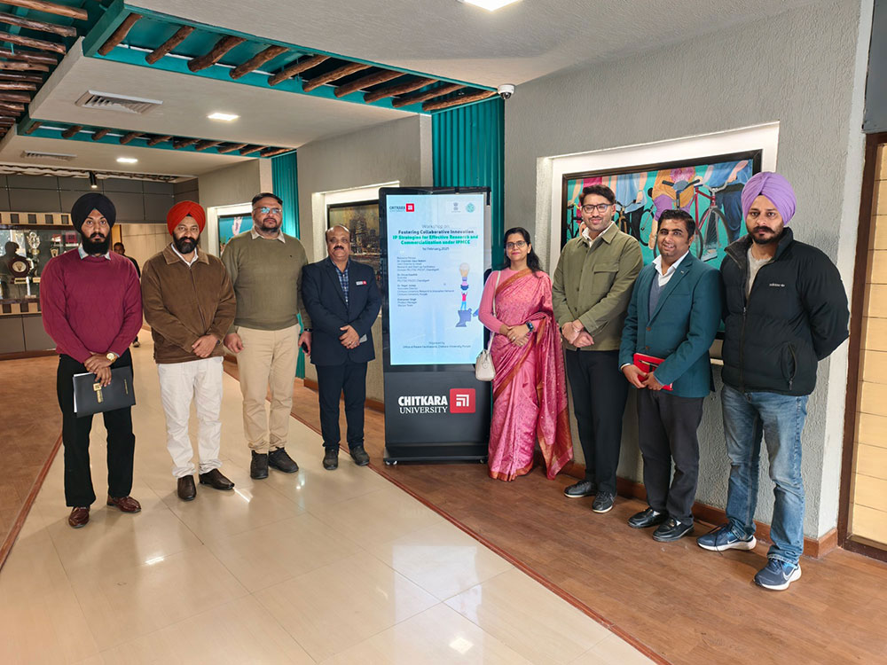 Chitkara University, in collaboration with the Patent Information Centre & Technology Innovation Support Centre, PSCST, Chandigarh, hosted a workshop titled "Fostering Collaborative Innovation: IP Strategies for Effective Research and Commercialisation” on February 1, 2025. The event brought together faculty members and researchers from different departments of the university with an aim to foster collaborative innovation and strengthen research and commercialisation under the IPMCC framework.