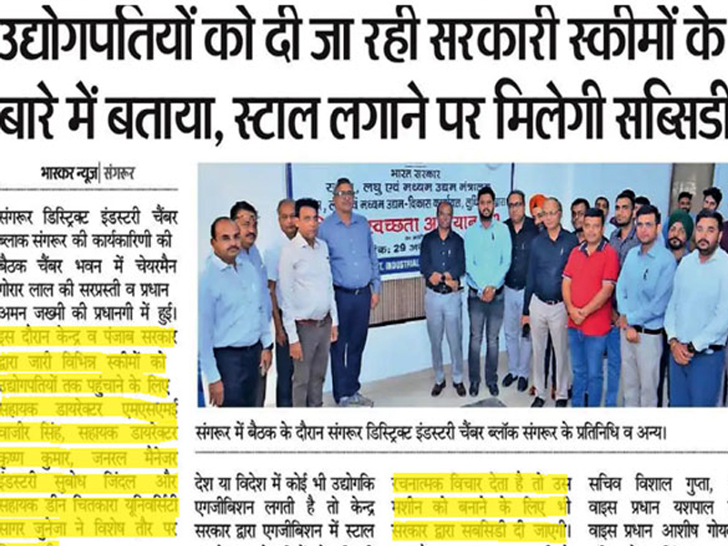 Around 35 Industrialists from Sangrur Cluster (Sangrur, Sunam, Dhuri, Malerkotla, Bhawanigarh) including Mr. Gora Lal (Chairman), Mr. Aman Zakhami (President), Mr. Vishal Gupta (Gen. Secretary), Mr. Rakesh Garg Rocky (Finance Secretary), Mr. Sandeep Bansal Monu (IPP), Mr. Wazir Singh & Mr. Krishan Kumar (Assistant Directors, IEDS-DCMSME) attended this event.